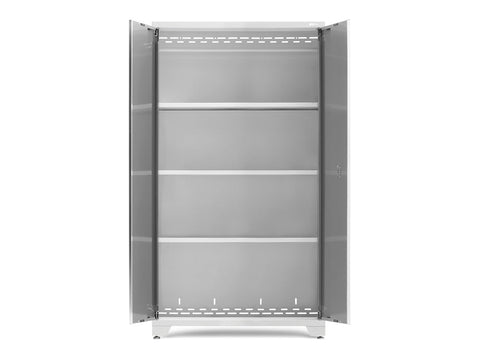 Upgrade the look and organization of your garage with a Bold Series 42 in. Locker. Built with heavy-gauge steel frames for added strength, these cabinets are ideal for storing sports equipment, tools and seasonal décor. Lockable doors with full-length aluminum handles keep your belongings secure, with a flat front profile for maximum clearance for vehicles. Three height-adjustable steel shelves offer customizable storage for items of all sizes, and the included closet rod converts your Locker to a hanging storage closet, great for outerwear and seasonal clothing. The durable paint finish is scratch and rust resistant, to hold up to the tough conditions of your garage. For heavy-duty steel storage with a clean, modern look, the Bold Series 42 in. Locker is a great solution for an organized space.