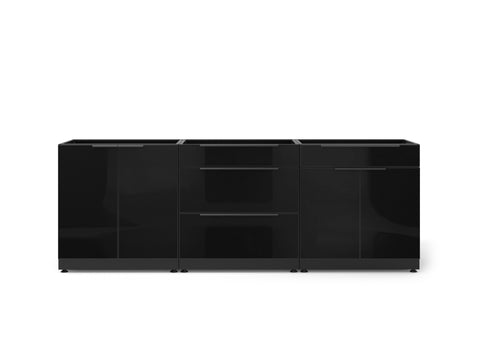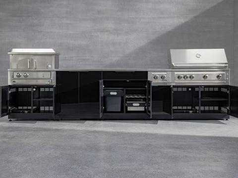 Add modern, functional storage to your exterior living space with Outdoor Kitchen cabinets in Slate Gray. Constructed from aircraft-grade aluminum, these strong and durable cabinets offer plenty of weather-resistant storage to help you get organized. Slate-gray tempered glass doors with integrated handles provide a modern, sleek style that compliments any home, and the height-adjustable levelers keep your cabinets level on uneven decks and patio stones. Adjustable shelves let you customize your 2-Door Cabinet to store any sized items. The 3-Drawer Cabinet has adjustable upper drawer dividers for cutlery and tool organization, with two extra deep drawers, perfect for storing all your hosting essentials. Keep organized and upgrade your backyard living space, with NewAge Products Outdoor Kitchen cabinets in Slate Gray.