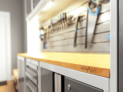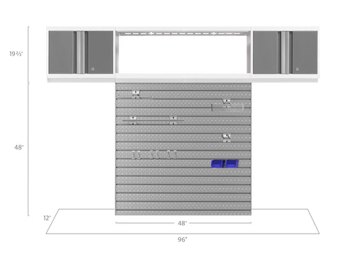 Upgrade the look and organization of your garage with Bold Series 3.0 Cabinetry. Built with heavy-duty steel frames for extra-strength, these cabinets are ideal for storing your garage equipment behind closed doors. Full-length aluminum handles let you easily access your gear, with lockable doors to keep items secure. Wall Cabinets keep your floors clear, leaving you space to park your car, while the multi-function Integrated Display Shelves provide a unique solution for accessible storage in your work area. The diamond plate pattern Slatwall Kit includes two 2 ft. x 4 ft. panels that can be installed vertically for a stacked wall configuration, horizontally for a long length of tool storage, or on separate walls for area-specific organization. The Steel Slatwall Accessory Kit includes baskets, hooks, and utility components. Get organized and improve the functionality of your garage, with a Bold Series 3.0 Cabinet System.